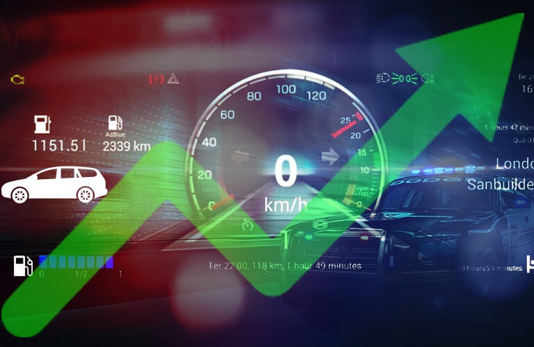 Solução para frotas com identificação de motorista, aceleração, freada, curva, excesso de velocidade, RPM entre outras.